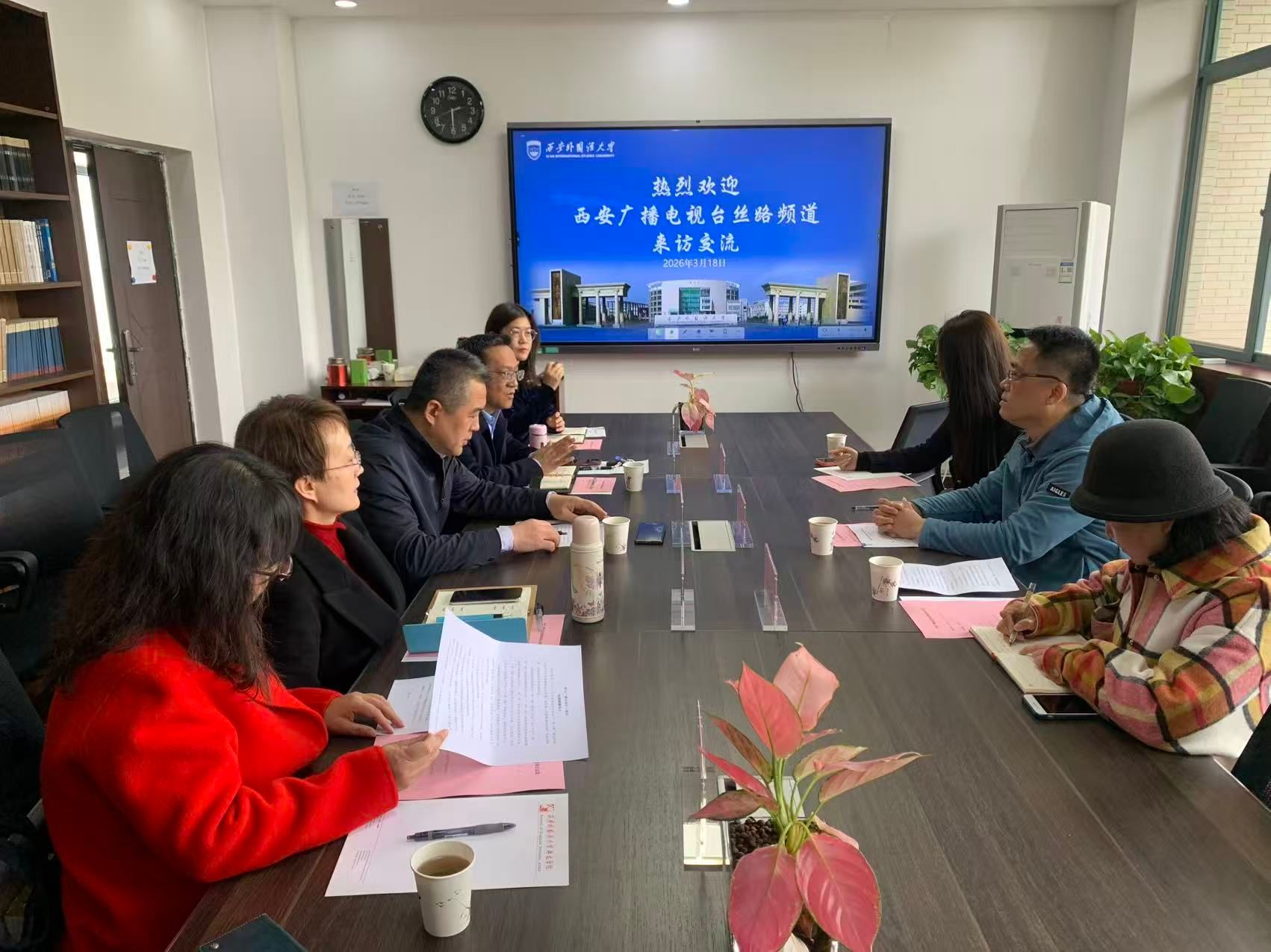 2026年3月18日下午,西安广播电视台丝路频道副总监李叶硕、《行走丝路》栏目责编郭秋琳、新媒体专员党梦佳一行来访,与金年会