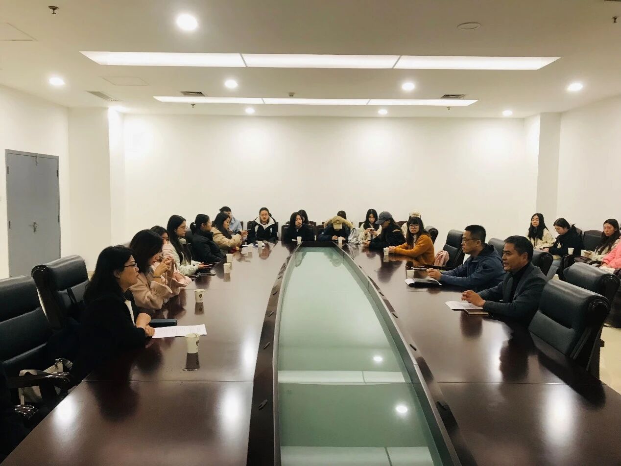 王静副教授分享了口笔译实践中心近年来在政府高级别会议服务、中外文化交流促进等方面的亮眼成果。结合中国文化国际传播的时代命题,她畅谈了传播过程中的现实困境与实践感悟,分享了带领学生开展自媒体文化传播的创新经验,并提出借助学校国际化资源拓展传播路径的新思路。双方还就唐诗英译项目的初步制作方案、可行性、视频拍摄规范、版权保护等核心问题展开深入探讨。
