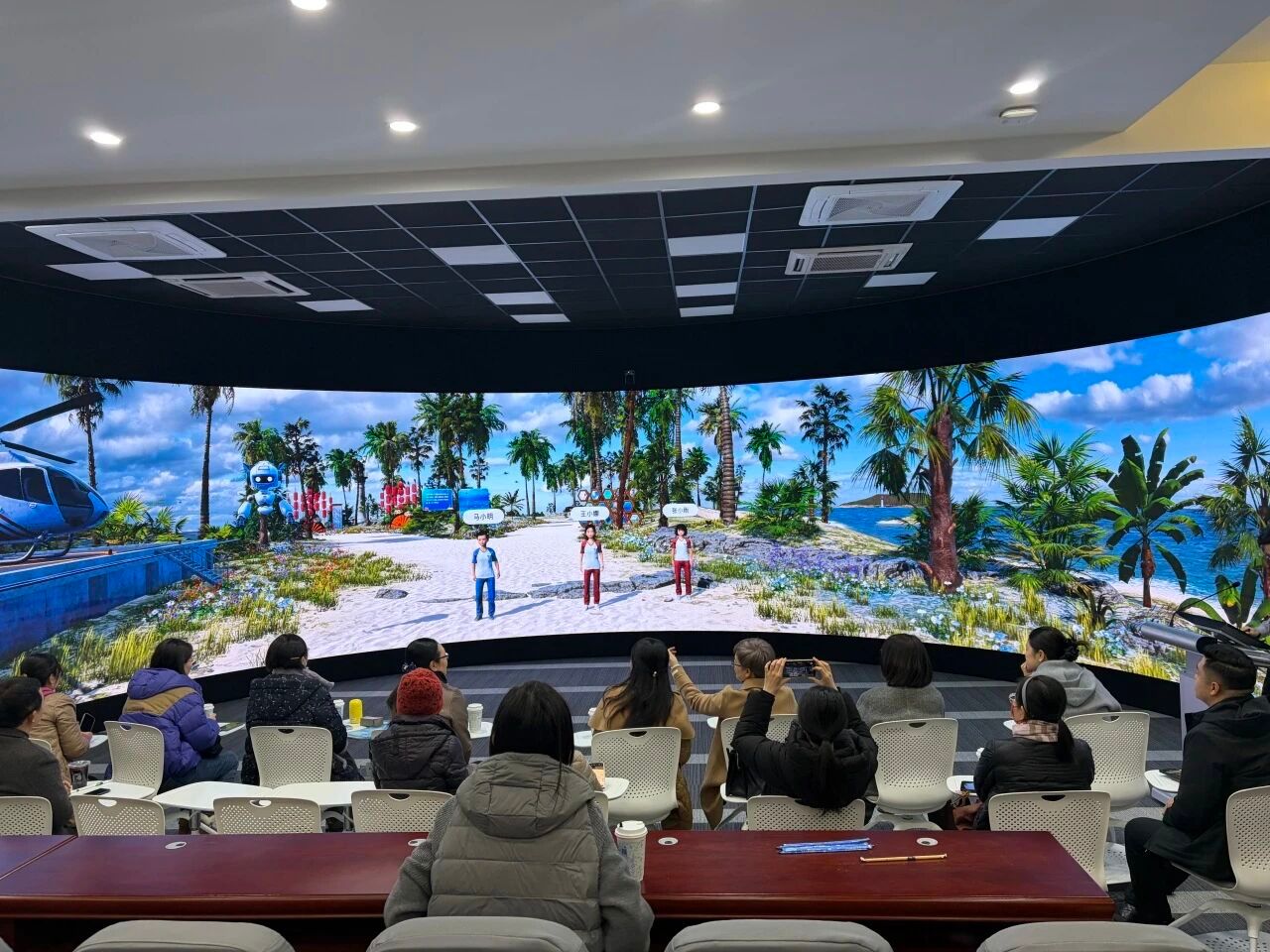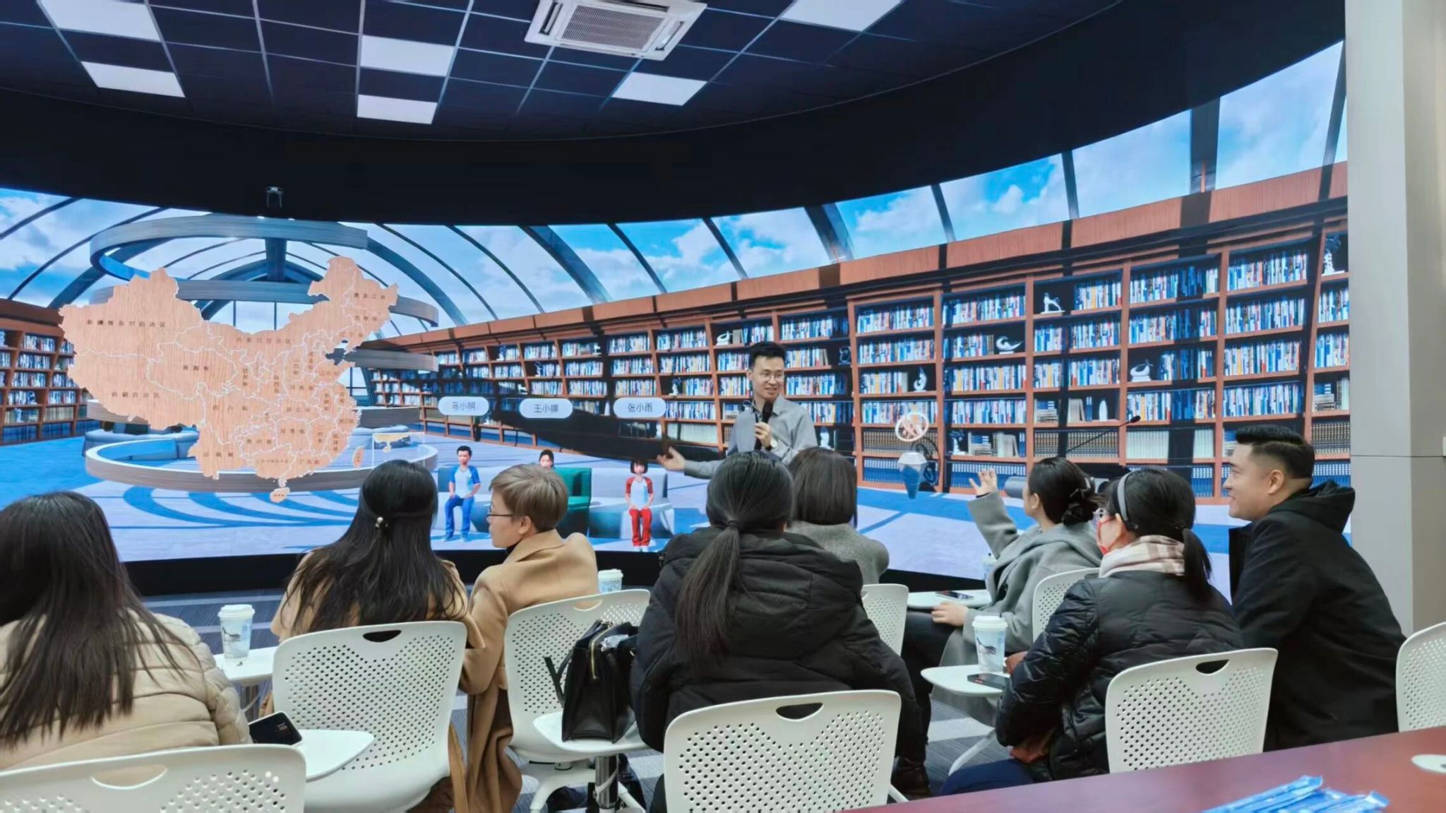 本次参访围绕全景教学实验室的硬件搭建标准、软件系统配置、教学场景设计及实践教学模式等内容展开深入交流研讨。参访团通过实地参观样板间,观摩教学场景演示,观看全景资源操作展示,系统学习了虚拟党史馆、教学督导与巡课、沉浸式专题教学等多元场景的建设思路与应用成效,并结合金年会